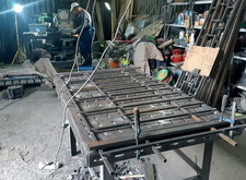 Вкопанные ранее сваи послужили великолепной основой для металлического каркаса, который мы и сварили прямо на территории места захоронения. Каркас был установлен по периметру участка с целью придать дополнительную жёсткость опалубке.