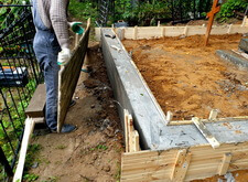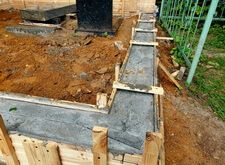 Затем мы приступили к подготовительному этапу установки ограды. Конструкция была объёмной, а потому было необходимо сначала сделать надёжный бетонный каркас. Мы выкопали траншею, а затем там, где это было необходимо, заколотили металлические сваи.