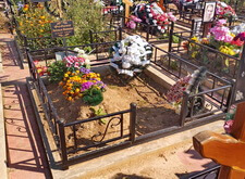 Когда памятник был изготовлен, идём на место захоронения. На данный момент на могиле находится лишь холмик, на котором растут цветы.