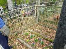 Первым делом мы замерили круглые портреты покойных на керамике. Старые пора было заменить, а новые предполагалось установить на то же самое надгробье, поэтому овалы должны быть идентичны предыдущим.