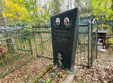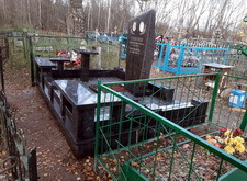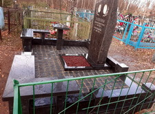 Так выглядит место захоронения во время промежуточного этапа работы: бетонный цоколь облицован гранитом, массивное надгробье установлено на своё новое место.