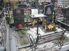 Состояние могилы после небольшого цикла работ. Покрашена лавка и ограда, обновлены розочки на ограде, помыты памятники и гранитный цоколь, убраны цветники и сорняки, почищена мраморная крошка. На могилу возложили свежие цветы.