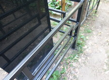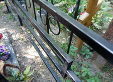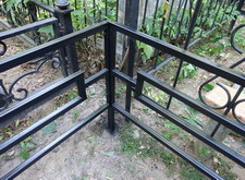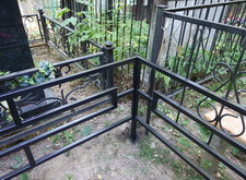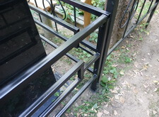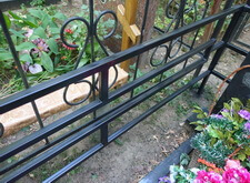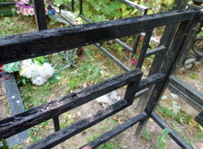 Последовательность работы стандартная. Во-первых, сжечь старую краску, во-вторых, зачистить ограду до металла, после покрыть грунтом чистый металл и покрасить черной краской. После покраски убраться на могиле. Далее на фото обожженная краска на ограде.