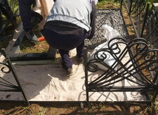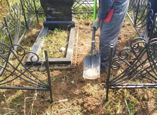 В данном случае мы приступили к работе на уже существующей могиле, на который были памятник с цветником и оградка. Клиенту мешала трава на участке, поэтому было принято решение отсыпать территорию каменной крошкой.