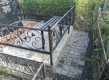 Затем мы доставили и установили приобретённый самим клиентом гранитный памятник, уложили на территорию участка брусчатку, поставили лавочку, цветник наполнили корой. Заказчику работа очень понравилось, фотографии, сделанные на момент сдачи объекта, представлены ниже.